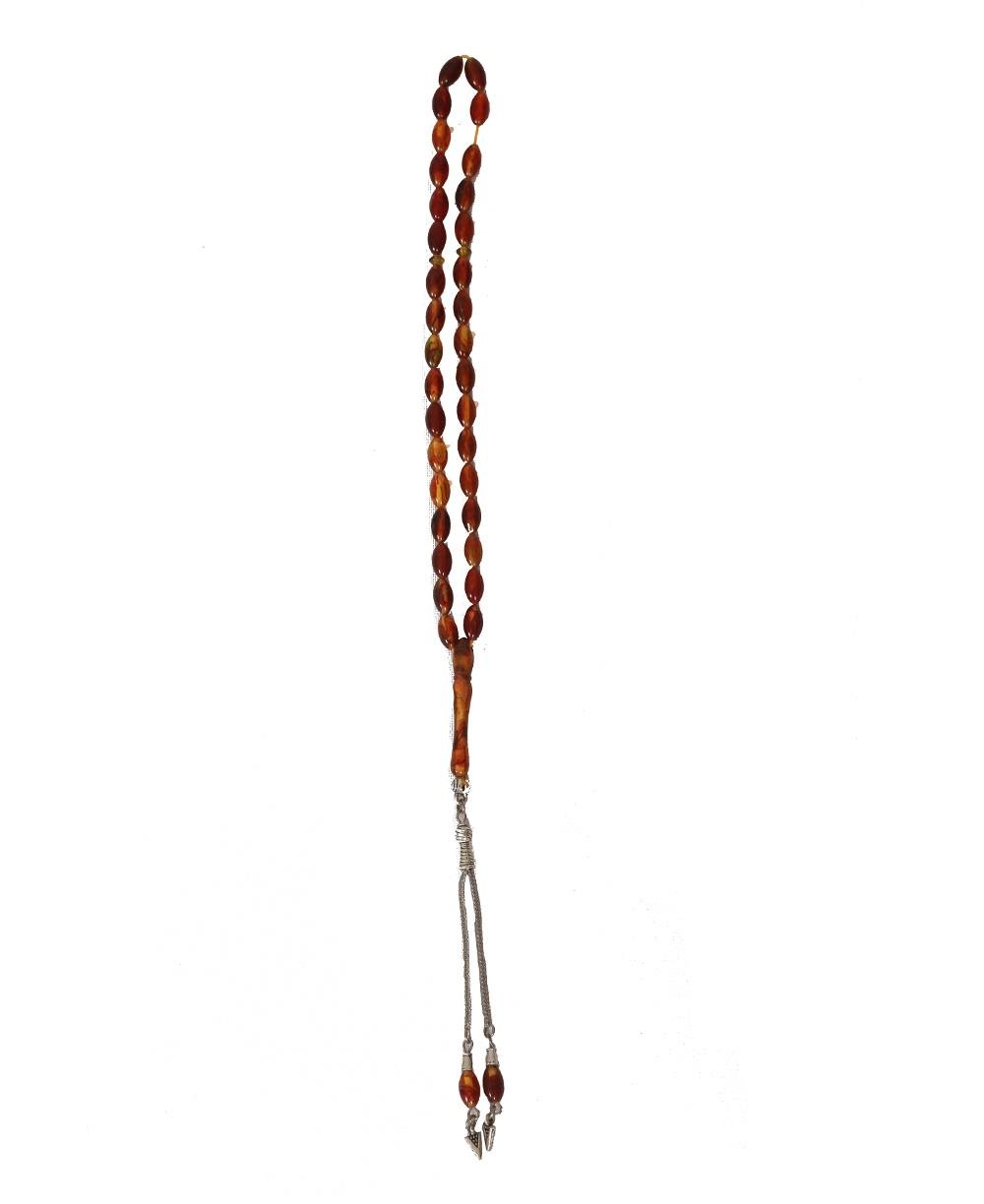 Akik Doğal Taş Arpa Kesim Tesbih 8 mm 33'lü Kahverengi