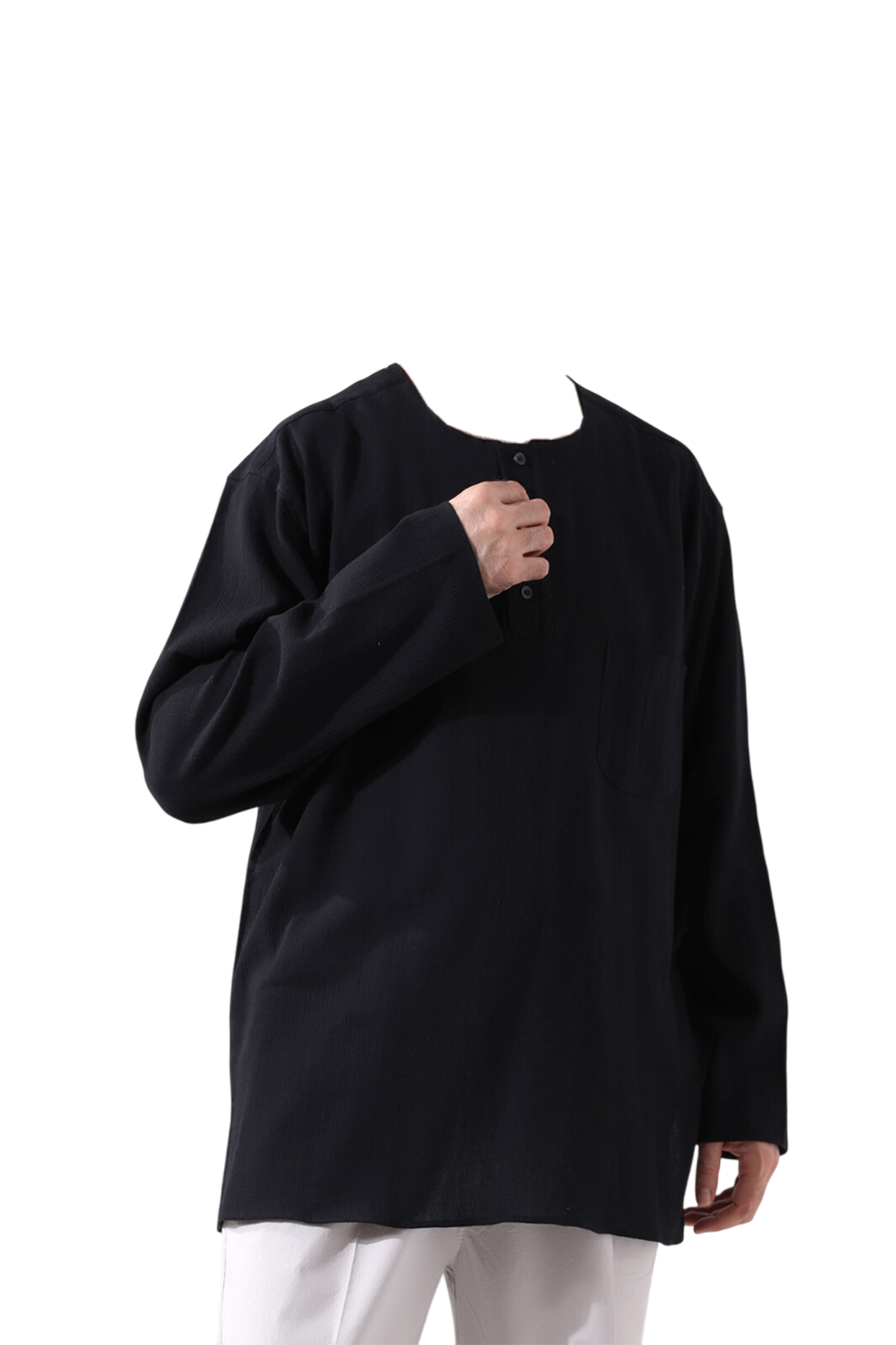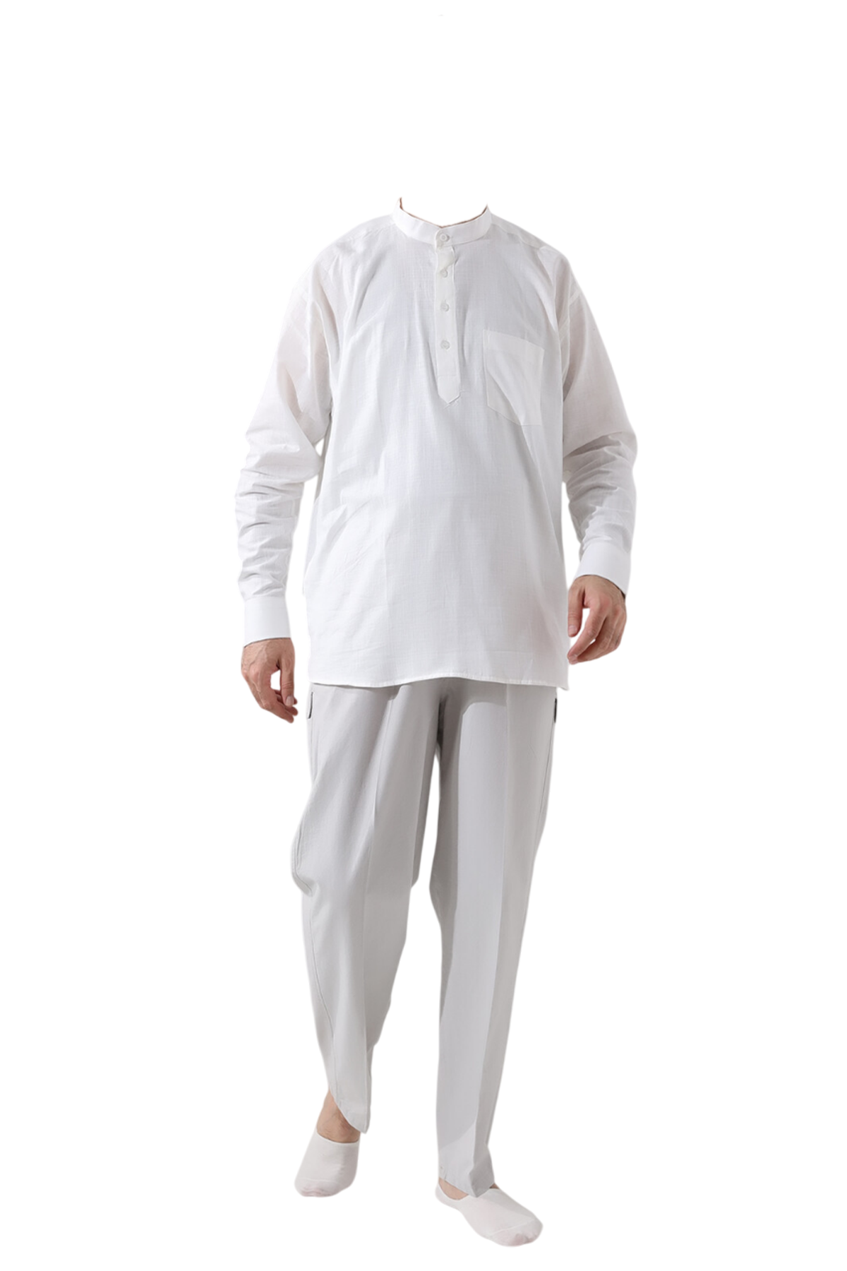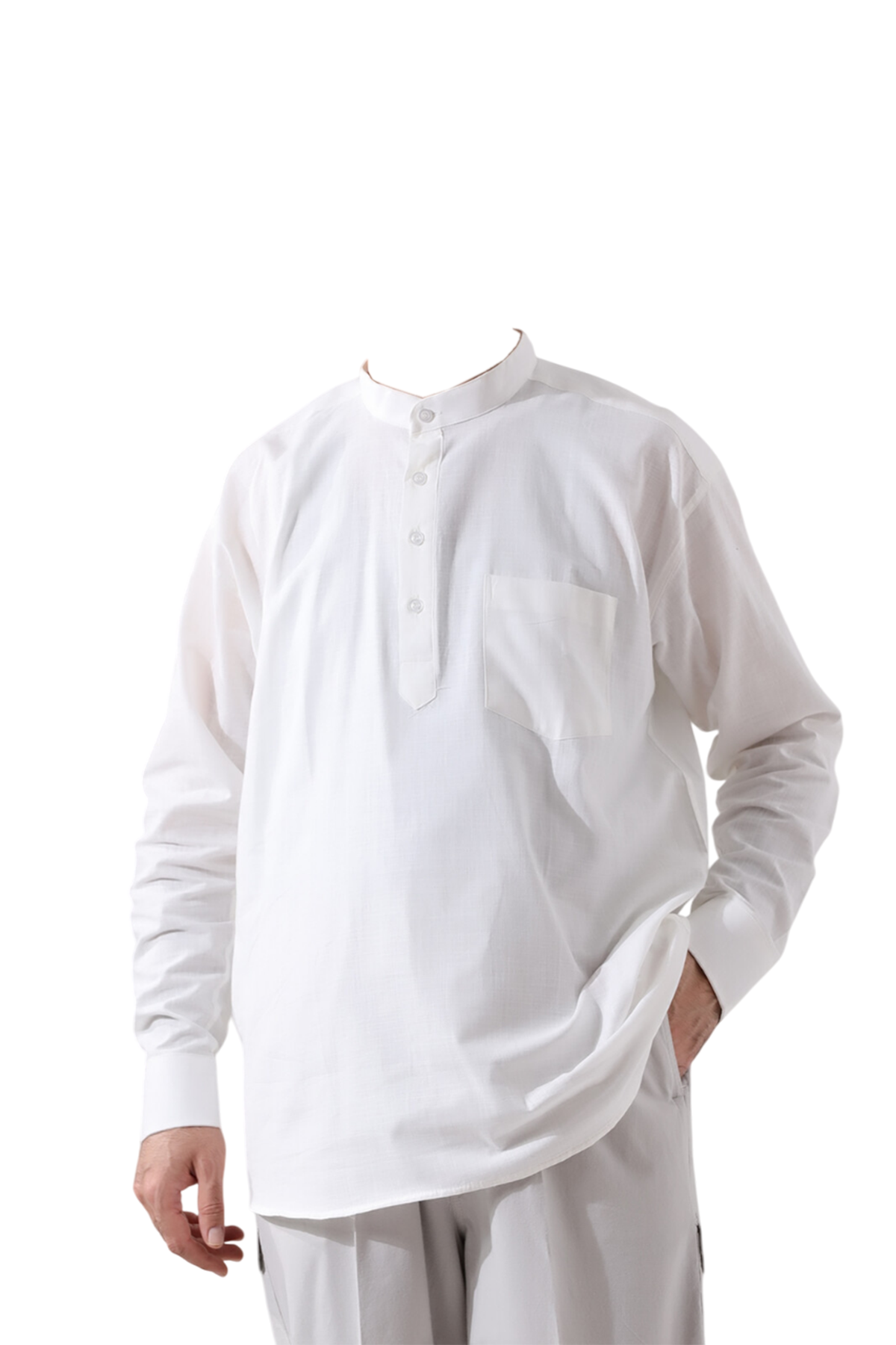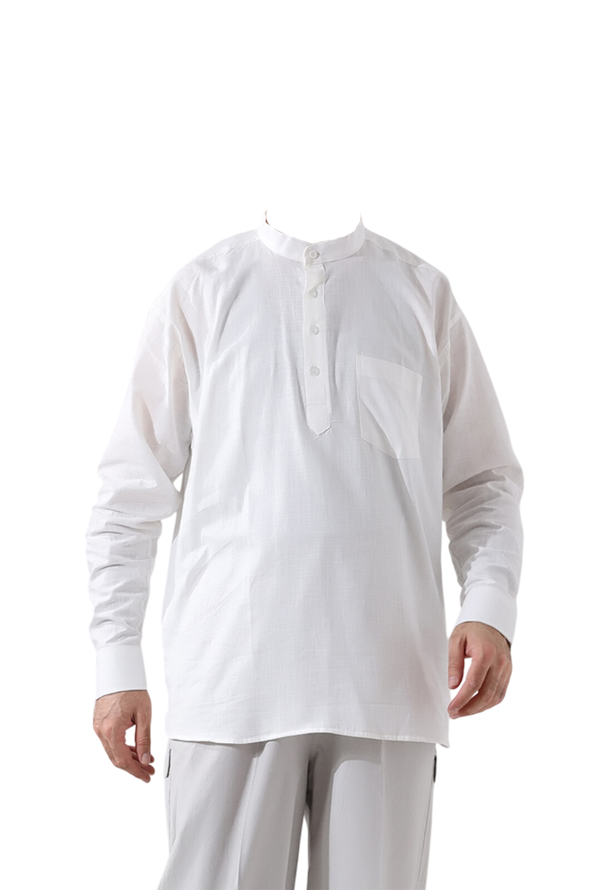 Hac ve umre ibadetleriniz sırasında rahatlık ve işlevselliği bir araya getiren bu keten gömlek, bol kesimi ve düz kol kısımları ile gün boyu konfor sağlarken, serin tutar ve terletmez. Üç düğmeli modeli, hem şıklığı hem de kullanım kolaylığını bir araya getirirken, vücuda yapışmayan kesimi ile her an rahat hissettirir. Hem hac ve umre ibadetinizde hem de gündelik hayatta rahat bir kullanım sağlar.