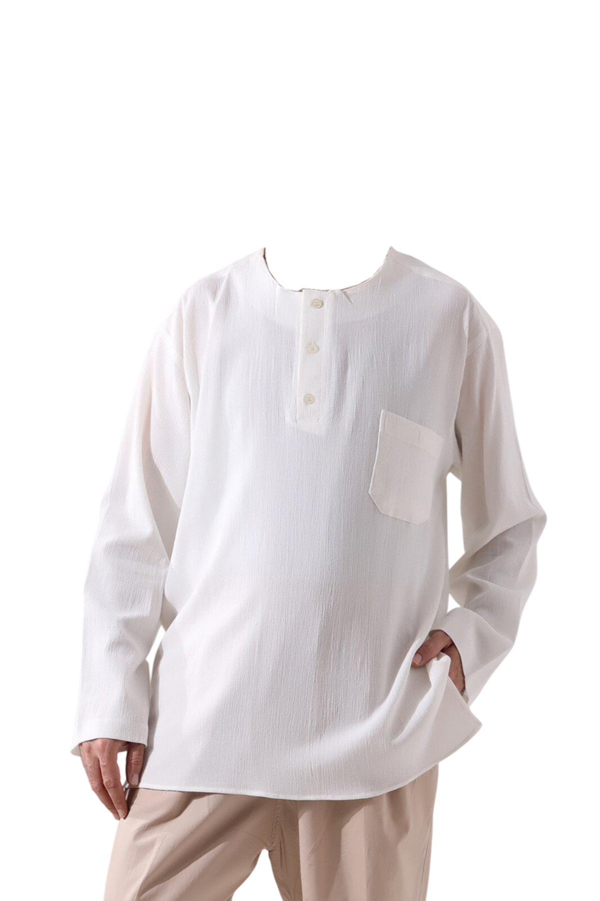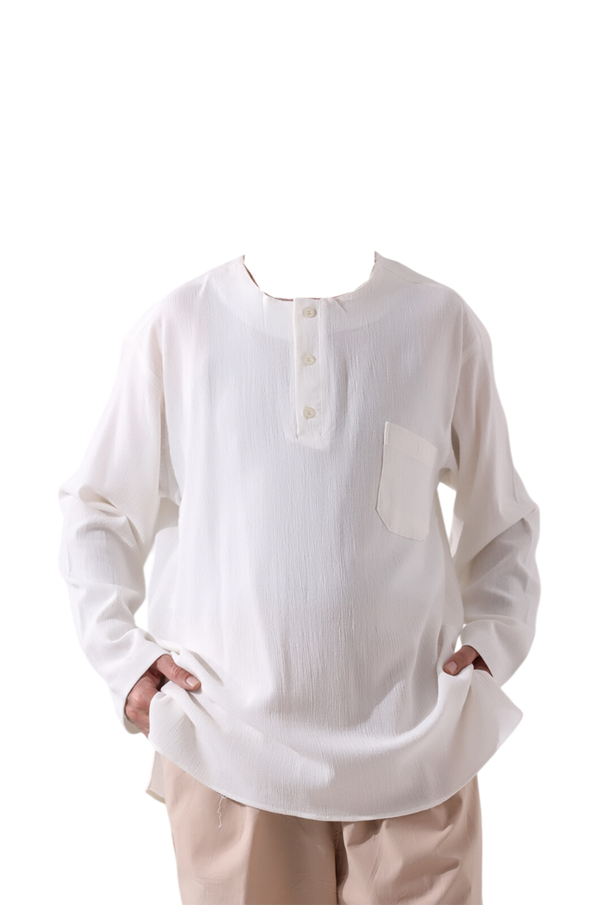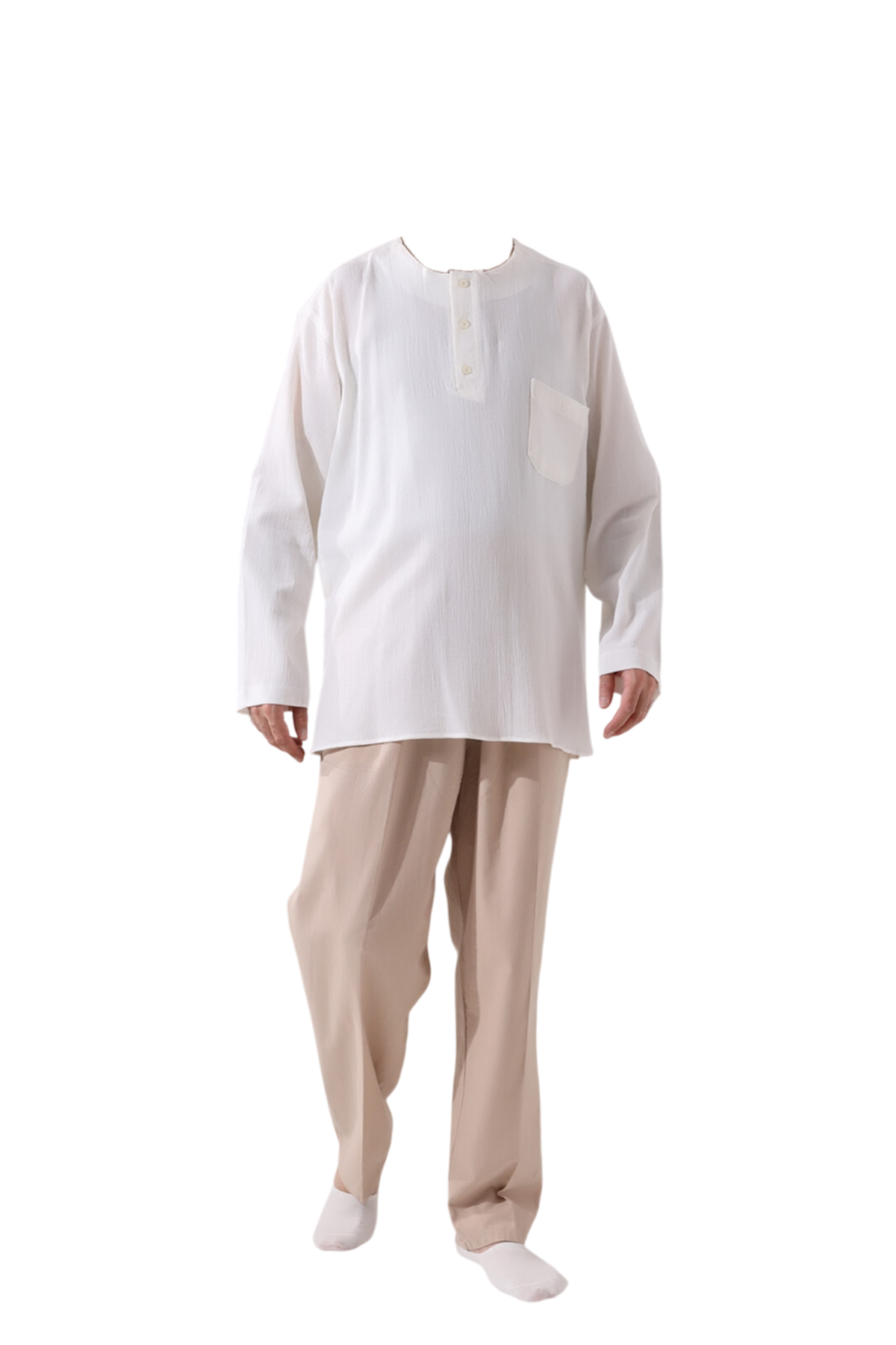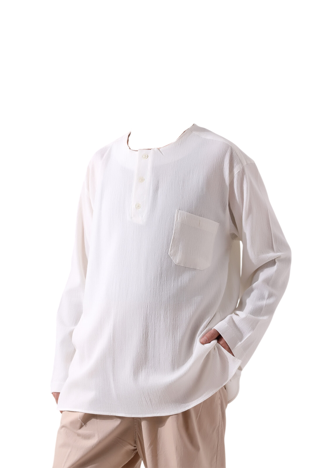 Hac ve umre ibadetleriniz sırasında rahatlık ve işlevselliği bir araya getiren bu keten gömlek, bol kesimi ve düz kol kısımları ile gün boyu konfor sağlarken, serin tutar ve terletmez. Üç düğmeli modeli, hem şıklığı hem de kullanım kolaylığını bir araya getirirken, vücuda yapışmayan kesimi ile her an rahat hissettirir. Hem hac ve umre ibadetinizde hem de gündelik hayatta rahat bir kullanım sağlar.