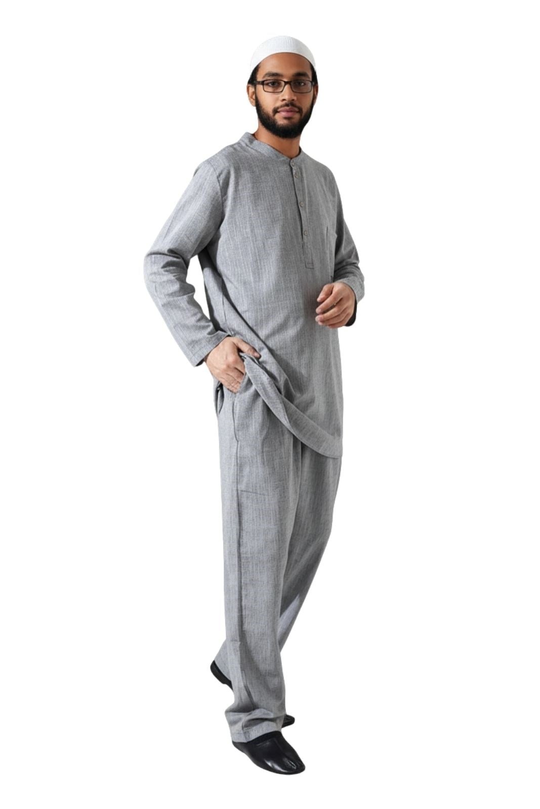 Erkek Tek Cepli Gömlek Pantolon İkili Takım Hac ve Umre Kıyafeti Gri